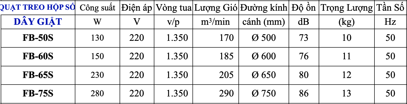 Quạt treo công nghiệp Soffnet FB-75S - Sải cánh : 750 (mm) - Điện áp : 220 (V - Tần Số : 50 (Hz) - Công suất : 280 (W) - Độ ồn : 86 (dB) - Lượng gió : 290 (m3/min) - Vòng tua : 1350 (v/p) - Xuất xứ : Trung Quốc - Bảo hành : 24 Tháng